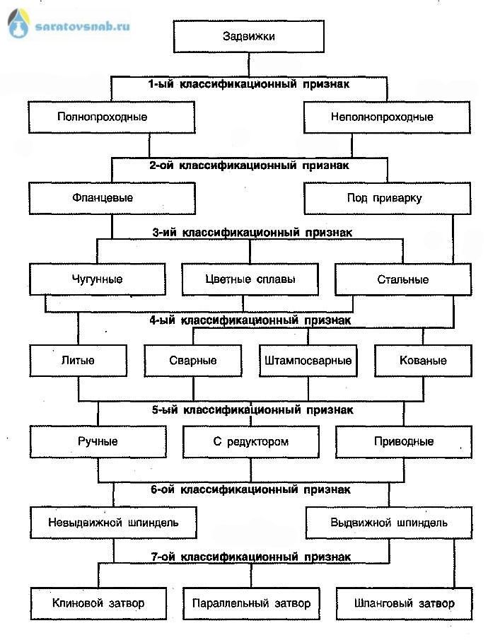 Все задвижки можно условно классифицировать по 7 отличительным признакам (см. рис.):